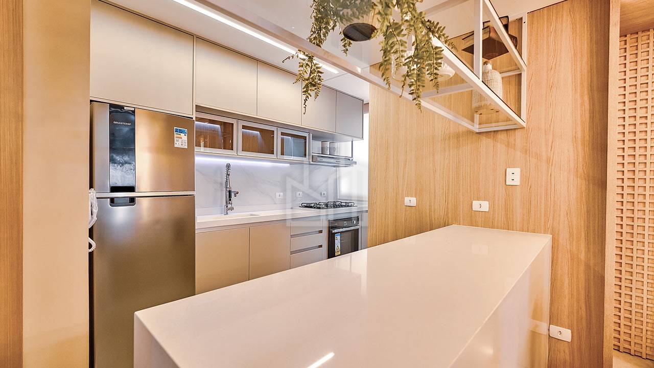 Piso em porcelanato ou laminado (a escolher), até 04 pontos de ar condicionado (sala e quartos), forro em gesso, bancadas em granito nos banheiros e churrasqueira, aquecimento de água a gás na cozinha e banheiros, sistema acústico nos banheiros, laje técnica, medidor individual de gás/luz/água, churrasqueira com sistema de exaustão forçada, infraestrutura para cerca elétrica e sistema de vigilância, tubulação para TV a cabo, automação e interfones.