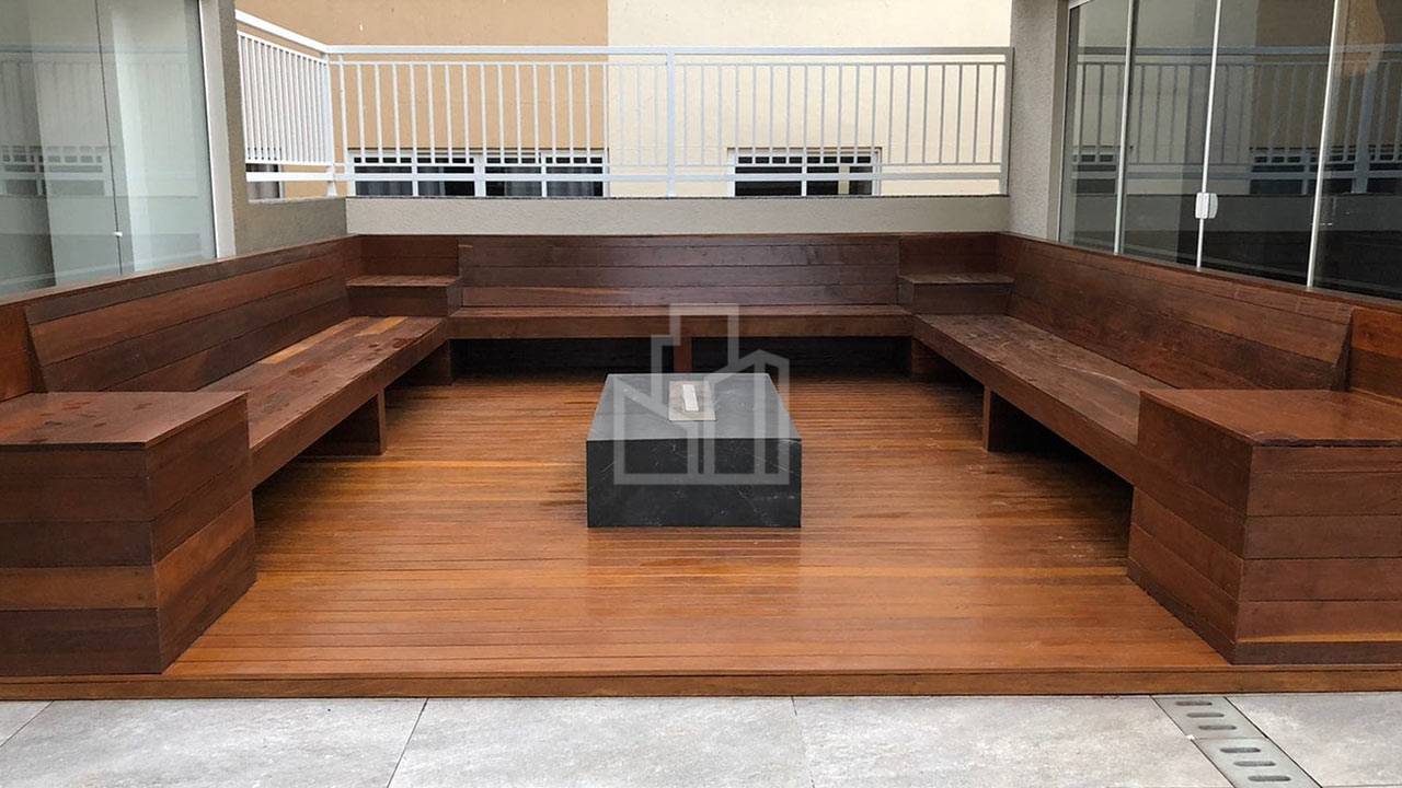 Hall decorado pela construtora, brinquedoteca, playground, pergolado, banheiro para funcionários, depósito para material de limpeza, garagens e paisagismo entregue pela construtora.