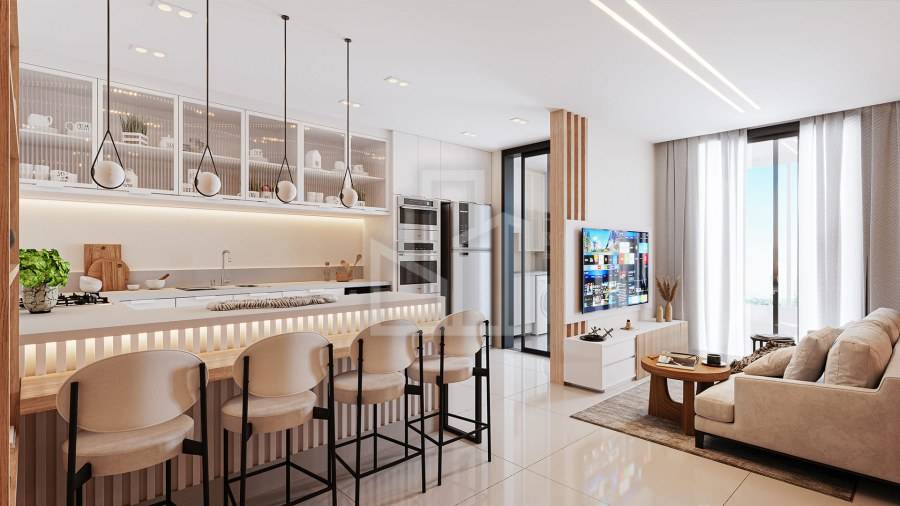 1 Suíte + 1 Quarto, Sala de estar c/ cozinha integrada, Varanda Gourmet, 1 Vaga de Garagem