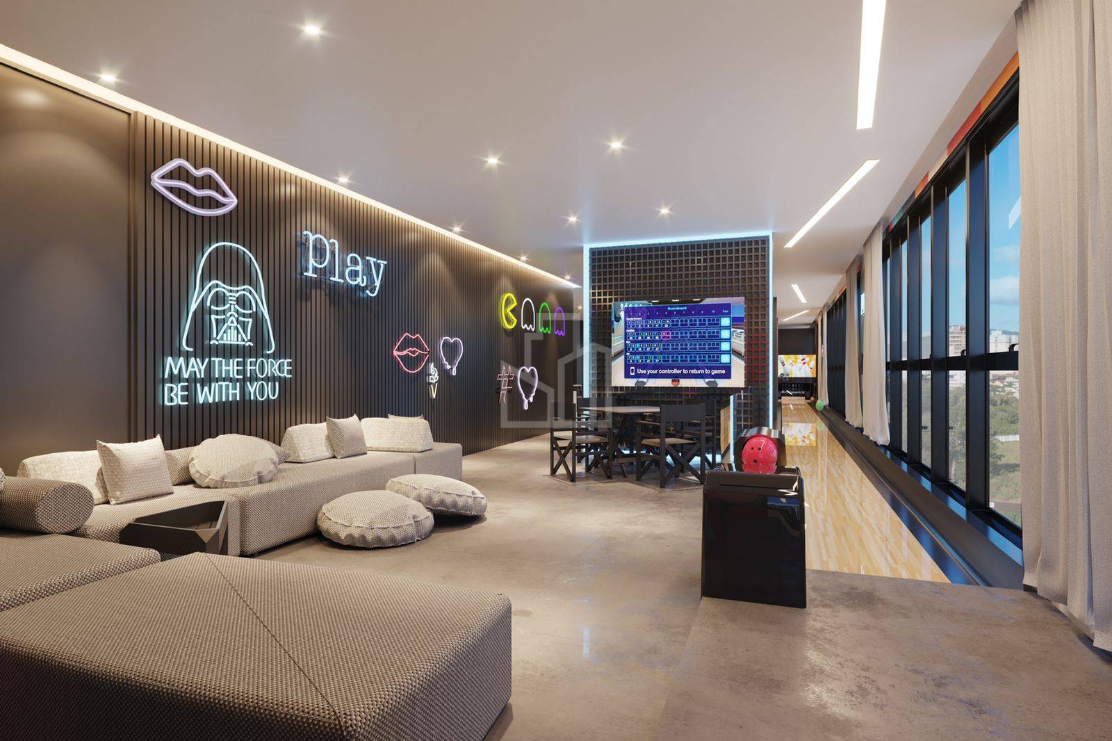 - Sala de jogos com boliche e bar